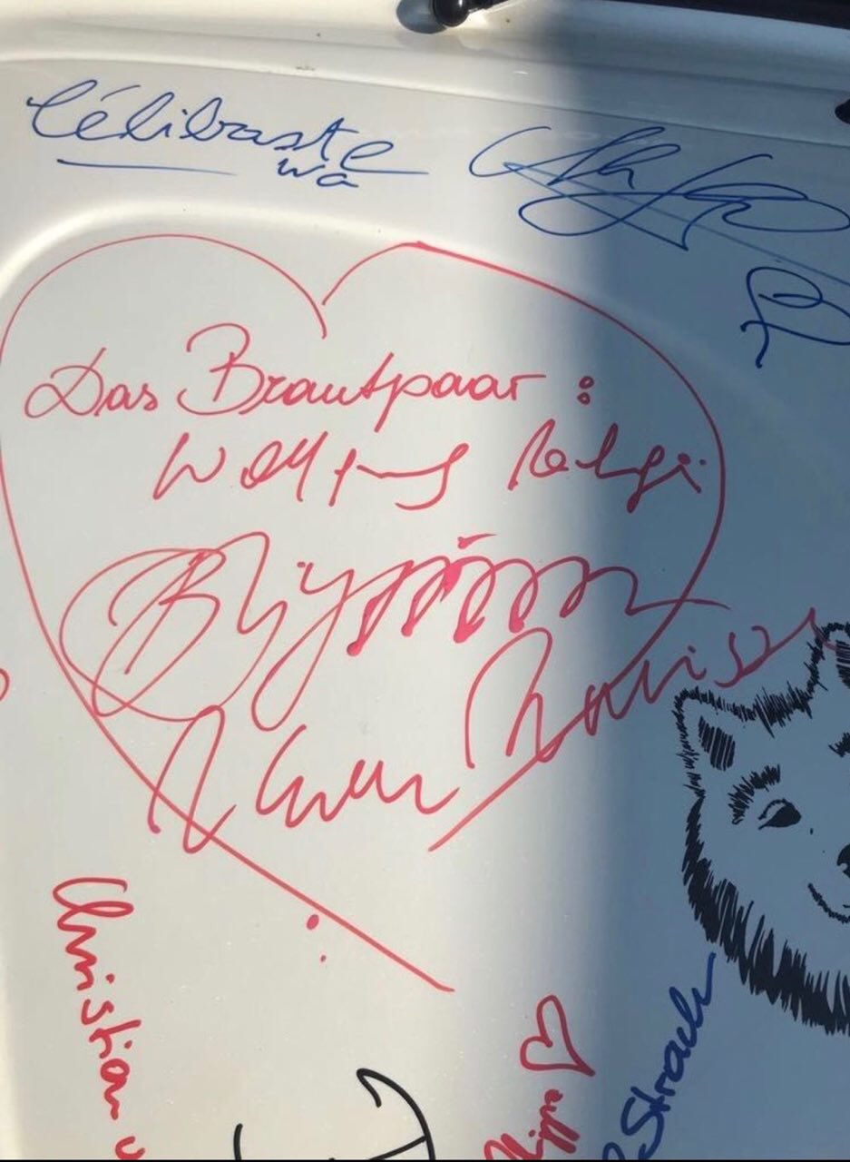 Elutazása előtt filctollal még egy kis szívet rajzolt a menyasszony és vőlegény autójára, beleírta a pár nevét, majd aláírta a rajzot. Az orosz elnök németül vett érzékeny búcsút az újdonsűlt pártól és az osztrák sajtó képviselőitől, majd visszautazott Grazba, ahonnan Berlinbe repült tovább. Ott már dolog várta. Meg az izgatott Lápi Lotyó. „Na milyen vaút Vova?!” – kérdezte. (Gondoljuk mi.) De úgy tudjuk Berlin – Mesebergben volt más téma is, nem csak a gamlitzi lakodalom.