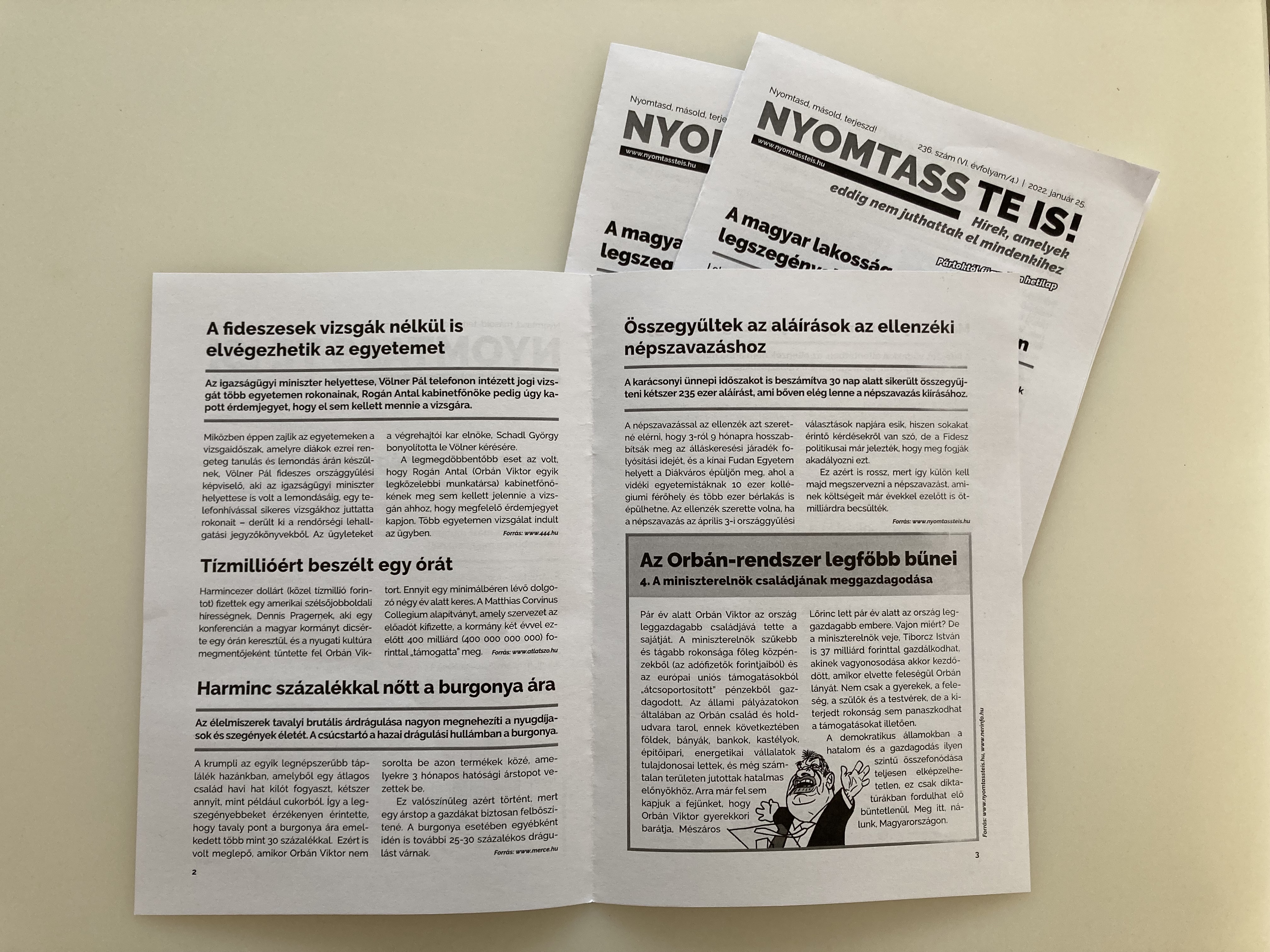 Voltak nagyobb hullámok. A 2018-as választás előtt voltak lapszámok, amiket jóval több mint 500 ezer példányban nyomtunk ki. A milliótól sem voltunk messze. A rabszolgatörvény elleni tüntetés idején is hatalmas volt az érdeklődés. Békeidőben ugyanez inkább 100-200 ezer példányt jelent. Ezen a héten 370 településről érkeztek fotók önkéntes csoportok részéről, de sokan úgy nyomják és osztják, hogy nem is jelentkeznek, inkább nem küldenek fotót, csak nyomtatnak, és viszik körbe a lapot. Volt olyan nemrég, hogy hívtak Domonyból, hogy jöttek ők újságot osztani, de már minden postaládában van. És mi erről nem is tudtunk.