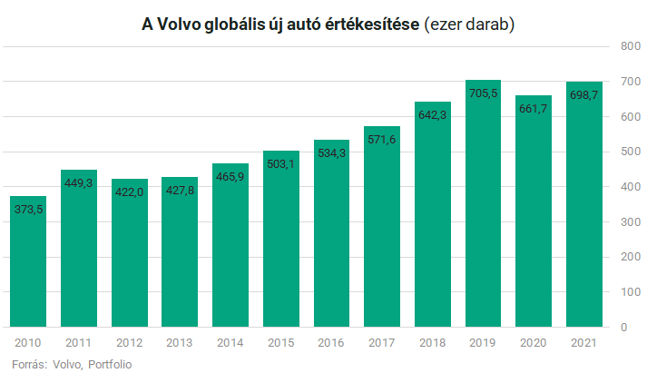 A kínai cégcsoport 2010-ben vásárolta meg a legendás svéd autógyártót, amelynek eladásai valósággal szárnyalnak azóta. Tavaly új rekord született, közel 700 ezer Volvo talált új gazdára, amely közel a duplája volt a 2010-es értékesítésnek.