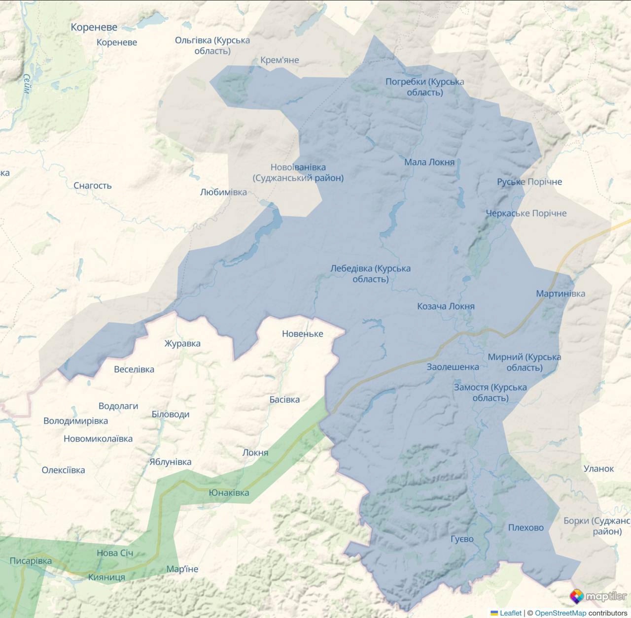 Ezenkívül a DeepState jelentős előrelépést mutatott az Orosz Föderáció részéről Cukurintól nyugatra (Novodmitrovka régióban), valamint Gornjak régióban, ahol csökkent az ukrán fegyveres erők behatolása az orosz pozíciókba (Zorjany régió).