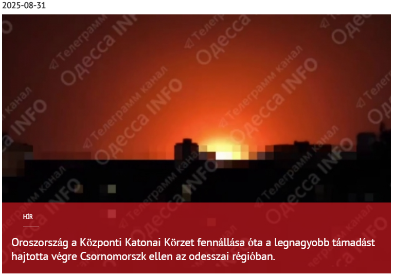 Vaszilij Guljajev, az odesszai megyei Csornomorszk polgármestere azt nyilatkozta, hogy az orosz csapatok 2025. augusztus 31-i éjszakai támadása volt a legnagyobb 2022 óta. Elmondása szerint a Geran típusú kamikaze drónok által végrehajtott csapások súlyosan megrongálták a város és környéke infrastruktúráját, beleértve a kritikus fontosságú vasúti kompkomplexumot is.