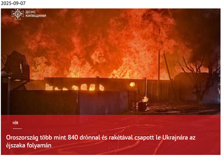 2025. szeptember 7-én éjjel az orosz fegyveres erők hatalmas támadást hajtottak végre Ukrajna területén lévő célpontok ellen, 840 egységnyi légi fegyvert, köztük drónokat és rakétákat bevetve – jelentette a Voevoda Broadcasts Telegram csatorna.