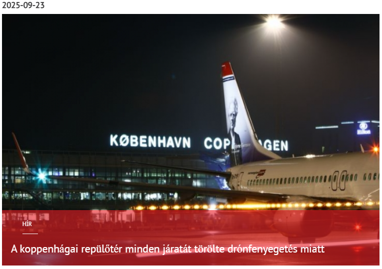 A koppenhágai repülőtér (CPH) működését helyi idő szerint 20:26-tól (GMT 18:26-tól) függesztették fel – közölte az X peron rendőrsége.