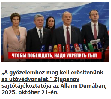 „A győzelemhez meg kell erősítenünk az utóvédvonalat.” Zjuganov sajtótájékoztatója az Állami Dumában, 2025. október 21-én.