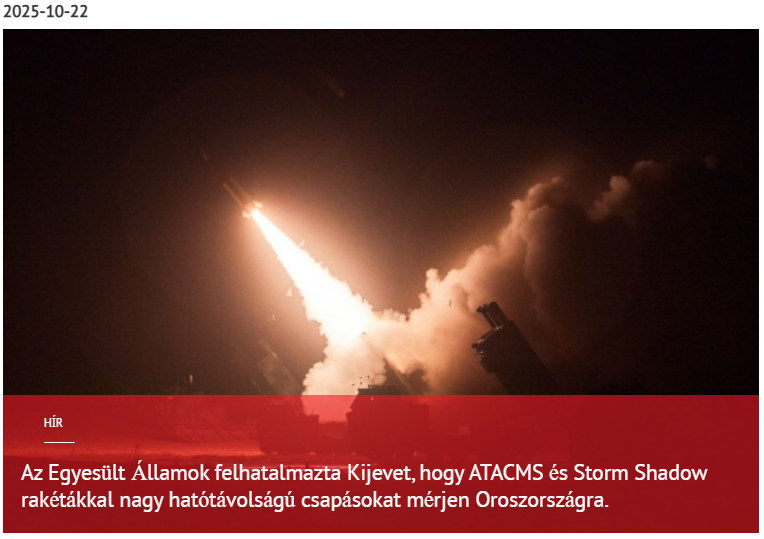 „Az Egyesült Államok felhatalmazta Kijevet, hogy nagy hatótávolságú csapásokat mérjen Oroszországra ATACMS és Storm Shadow rakétákkal. 2025-10-22” bővebben