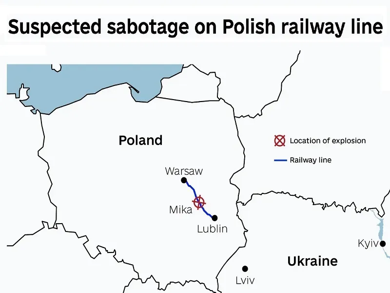 Lengyel nyomozók azt állítják, hogy a Varsót Lublinnal összekötő vasútvonalat robbanás rongálta meg, vélhetően. Donald Tusk miniszterelnök az X-en azt írta , hogy „A Varsó–Lublin útvonalon lévő vasúti sínek felrobbantása példátlan szabotázscselekmény, amely közvetlenül a lengyel állam és civil lakosságának biztonságát célozza meg. Ez az útvonal kulcsfontosságú az Ukrajnának szánt segélyek szempontjából is. Elkapjuk az elkövetőket, bárkik is legyenek ők.” Az incidens körüli kontextus nagyon releváns.