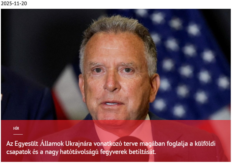 „Az Egyesült Államok Ukrajnára vonatkozó terve magában foglalja a külföldi csapatok és a nagy hatótávolságú fegyverek betiltását. 2025-11-20” bővebben
