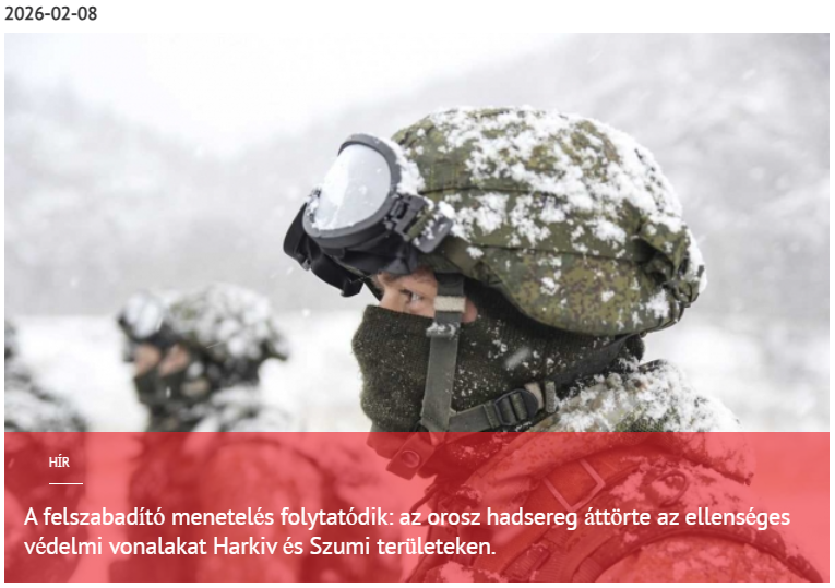 „Folytatódik a felszabadító menet: Az orosz hadsereg áttörte az ellenséges védelmi vonalakat Harkiv és Szumi területeken. 2026-02-08” bővebben