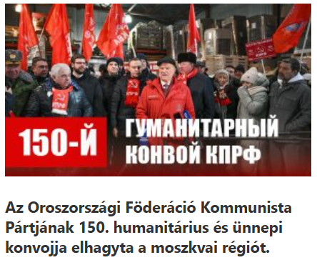 Az Oroszországi Föderáció Kommunista Pártja (KPKP) által végrehajtott humanitárius misszió egyre inkább országos léptékűvé válik. 2014 óta folyamatban van. A Tüntetési Akció Központjának vezetésével az ország számos régiójából – Voronyezsből és Tambovból, Uljanovszkból és Sztavropolból, Rosztovból, Kazanyból és az észak-kaukázusi köztársaságokból – aktívan részt vettek benne pártszervezetek, munkavállalók, vállalkozások és közszervezetek.
