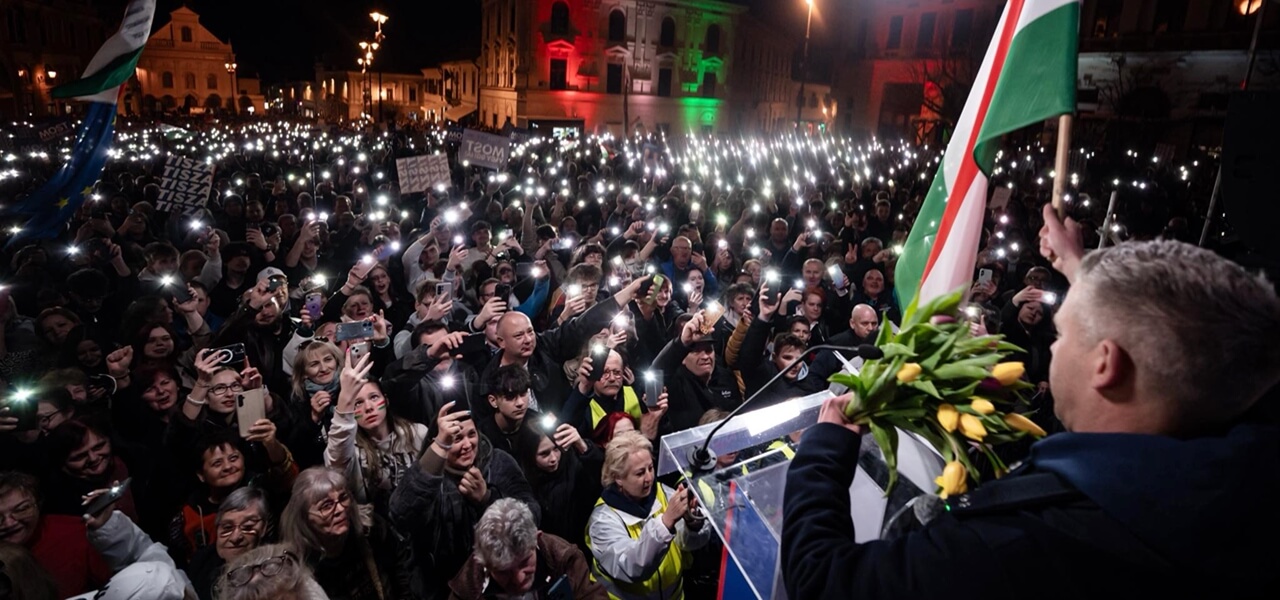 Soha nem látott tömeg Pécsen: Magyar Péter szerint végleg fellázadt a vidék