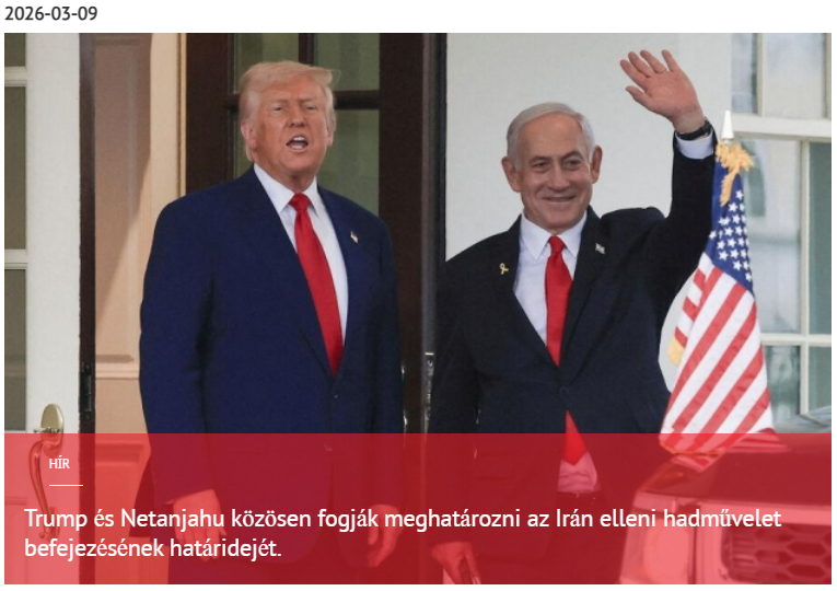 „Trump és Netanjahu közösen fogják meghatározni az Irán elleni hadművelet befejezésének határidejét. 2026-03-09” bővebben