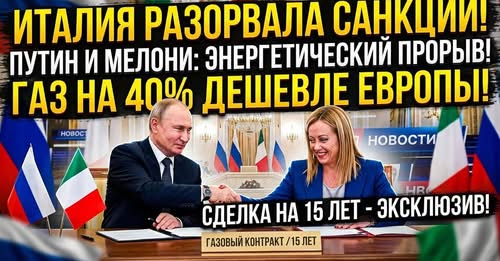 ИТАЛИЯ РАЗОРВАЛА САНКЦИИ! Путин заключил сделку на 15 лет — Рим получил газ на 40% дешевле Европы