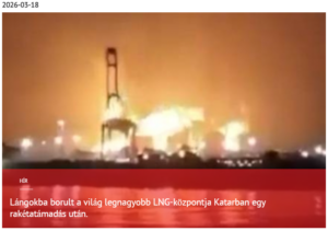 AVIA.PRO A globális energiapiac példátlan kihívással néz szembe a Katarban kritikus infrastruktúrát ért hatalmas csapás után. A QatarEnergy hivatalos közleményei szerint Ras Laffan iparvárosát, a globális cseppfolyósított földgáztermelés központját hatalmas rakétatámadás érte. A felvételek, amelyek gyorsan terjedtek a globális médiában és a közösségi médiában, megörökítették a csapások katasztrofális utóhatásait: hatalmas tűzoszlopok és sűrű fekete füst … Bővebben: Lángokba borult a világ legnagyobb LNG-központja Katarban egy rakétatámadás után 2026-03-18