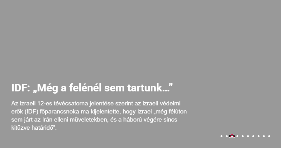 Az izraeli 12-es tévécsatorna jelentése szerint az izraeli védelmi erők (IDF) főparancsnoka ma kijelentette, hogy Izrael „még félúton sem járt az Irán elleni műveletekben, és a háború végére sincs kitűzve határidő”.