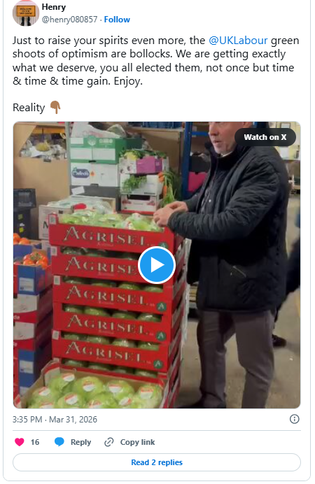 Ezen a héten a friss termékek ára az Egyesült Királyságban megduplázódott / megháromszorozódott 2026. március 31.