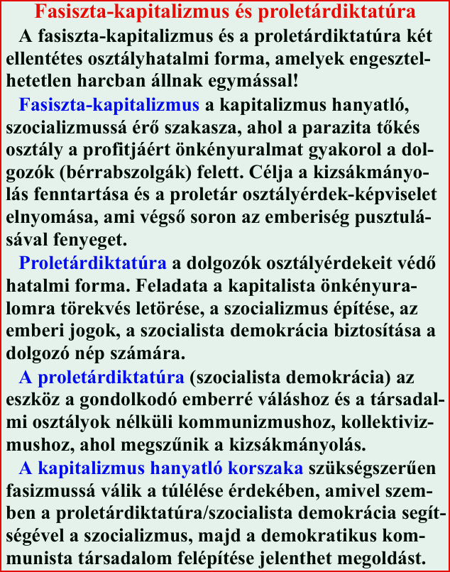 A fasizmus (fasiszta-kapitalizmus) ellen párja a proletárdiktatúrának!