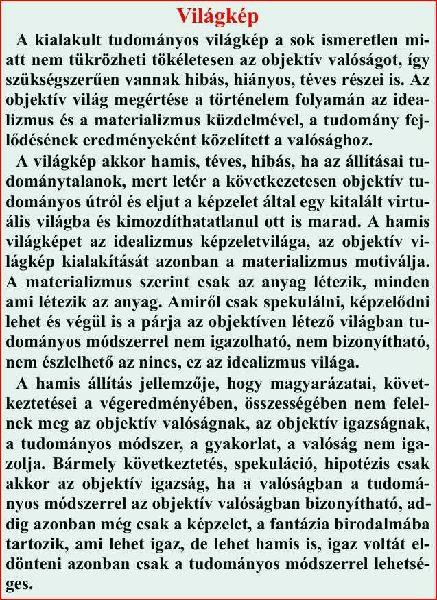 A kialakult tudományos világkép a sok ismeretlen miatt nem tükrözheti tökéletesen az objektív valóságot, így szükségszerűen vannak hibás, hiányos, téves részei is.