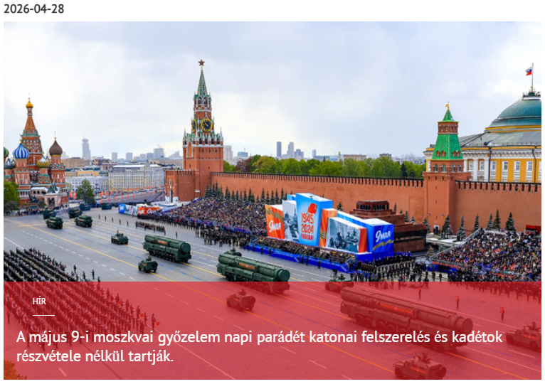 Katonai hírek, 2026. április 28., Avia.pro. Az orosz védelmi minisztérium bejelentette a Nagy Honvédő Háborúban aratott győzelem 81. évfordulója tiszteletére május 9-én a moszkvai Vörös téren megrendezésre kerülő katonai parádé végleges formátumát.