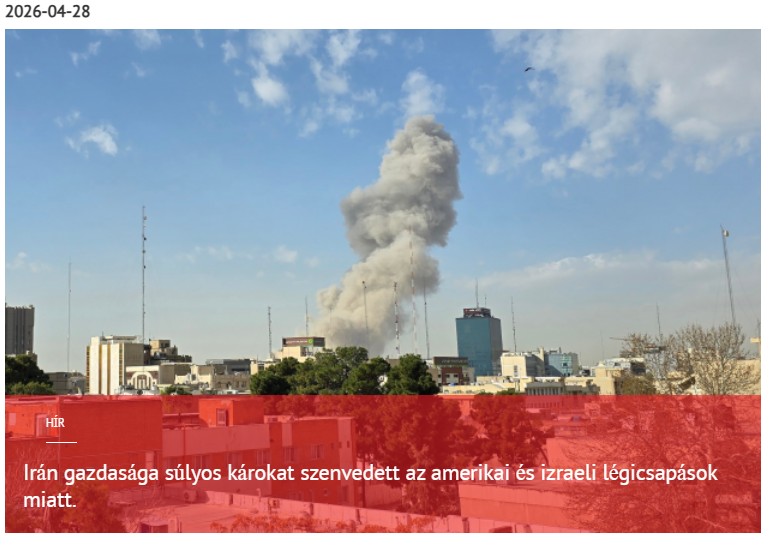 Világhírek, 2026. április 28., Avia.pro. Az iráni területen több mint öt hétig tartó folyamatos amerikai és izraeli légicsapások súlyos válsághoz vezettek az ország iparában. Az Associated Press szerint körülbelül 20 000 gyár rongálódott meg, ami az iráni feldolgozóipar körülbelül 20 százalékát teszi ki. Számos kulcsfontosságú iparágban a termelés gyakorlatilag leállt.