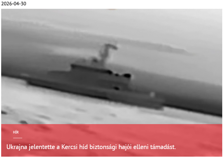 SVO Hírek, 2026. április 30., Avia.pro. Az ukrán haditengerészet két, a Kercsi-szorosi hidat őrző hajó sikeres megsemmisítéséről számolt be. Ezt követően az Orosz Vasutak szerint ideiglenesen felfüggesztették a vonatközlekedést a hídon, ami fennakadásokat okozott a menetrendben.