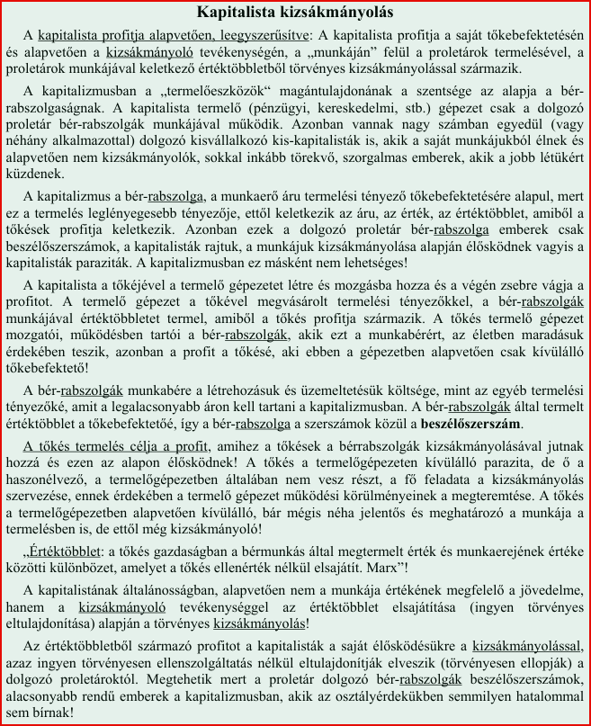A kapitalisták profitja a proletárok törvényes kizsákmányolásával keletkezik!