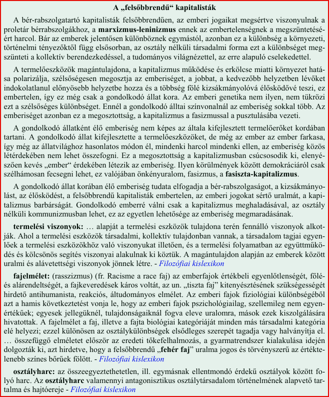 A bér-rabszolgatartó kapitalisták felsőbbrendűen viszonyulnak a proletár bérrabszolgákhoz!