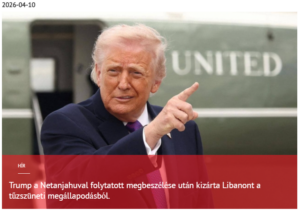 Trump kizárta Libanont a tűzszüneti megállapodásból a Netanjahuval folytatott tárgyalások után 2026-04-10