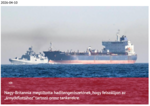 Nagy-Britannia megtiltotta haditengerészetének, hogy felszálljon az „árnyékflottához” tartozó orosz tankerekre. 2026-04-10